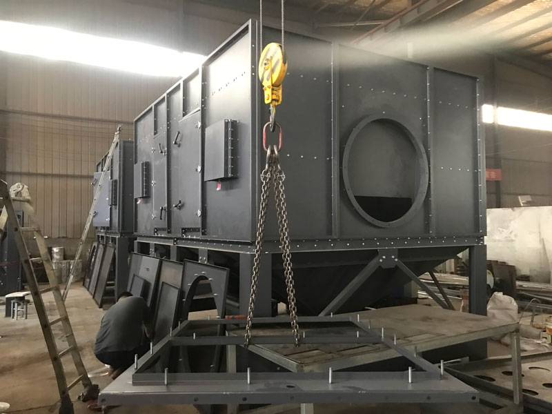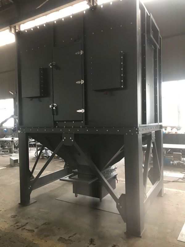 濾筒除塵器的濾筒布置非常重要,可以垂直或傾斜地布置在箱體的花板上。從除灰效果來看,豎向布置合理?;ūP下部為過濾室,上部為氣箱脈沖室。一個空氣分配板安裝在除塵器的入口處。