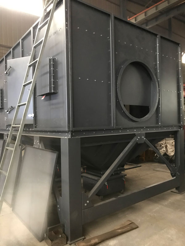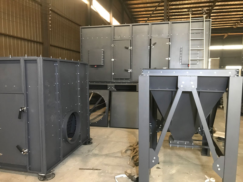 濾筒除塵器的濾筒布置非常重要,可以垂直或傾斜地布置在箱體的花板上。從除灰效果來看,豎向布置合理?;ūP下部為過濾室,上部為氣箱脈沖室。一個空氣分配板安裝在除塵器的入口處。